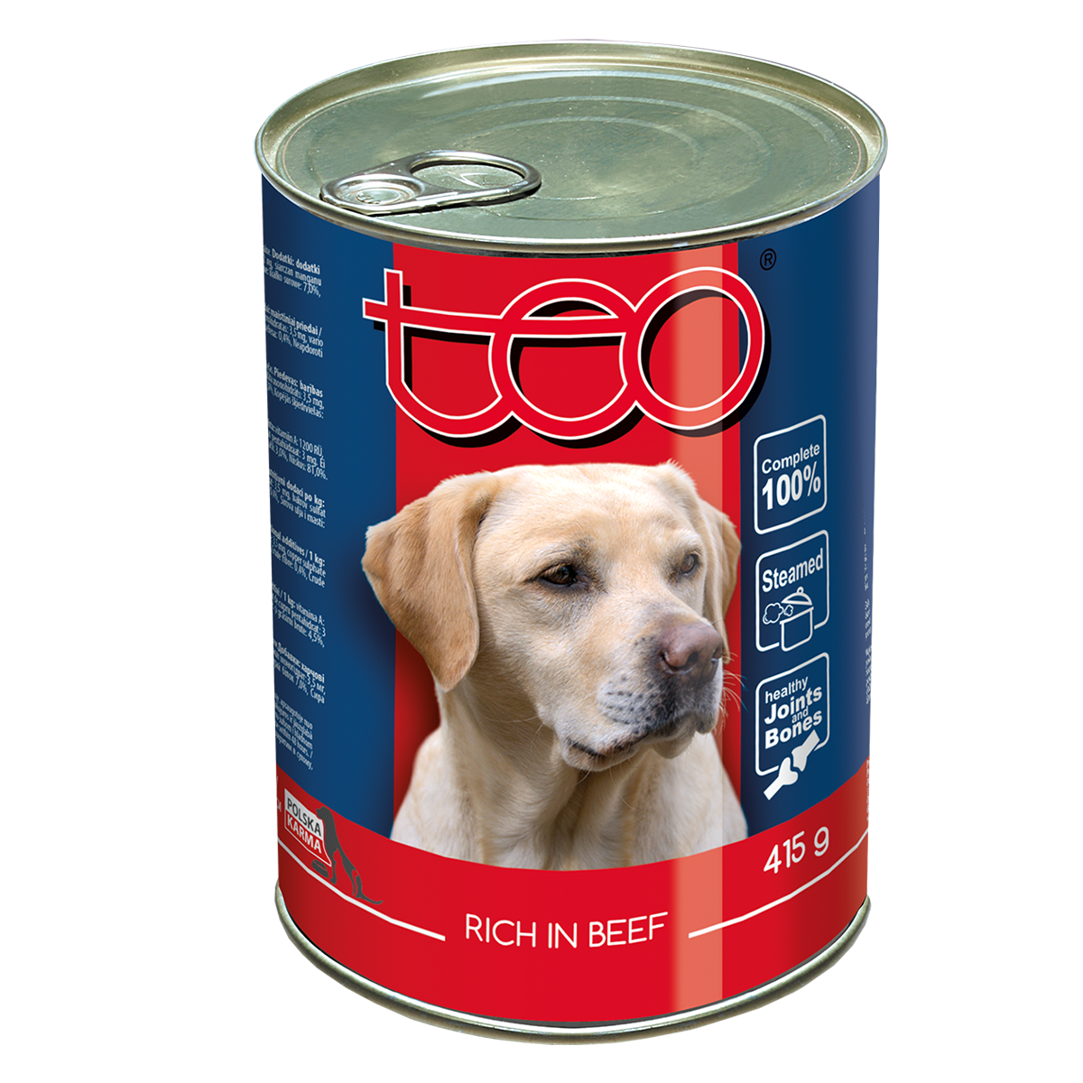 Тео е комплетно избалансирана течна храна за возрасни кучиња на база на говедско.