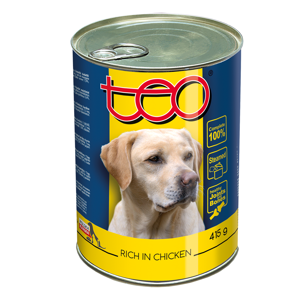 Тео е комплетно избалансирана течна храна за возрасни кучиња на база на пилешко.