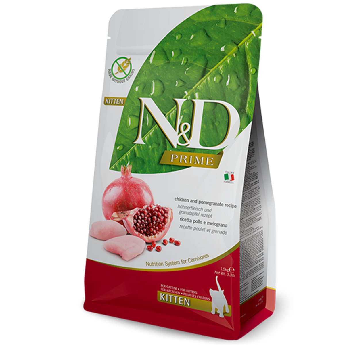 N&D Prime- Chicken & Pomegranate е комплетна храна за мачки. 98% протеини од животинско потекло, 0% вештачки конзерванси, 0% зрна.